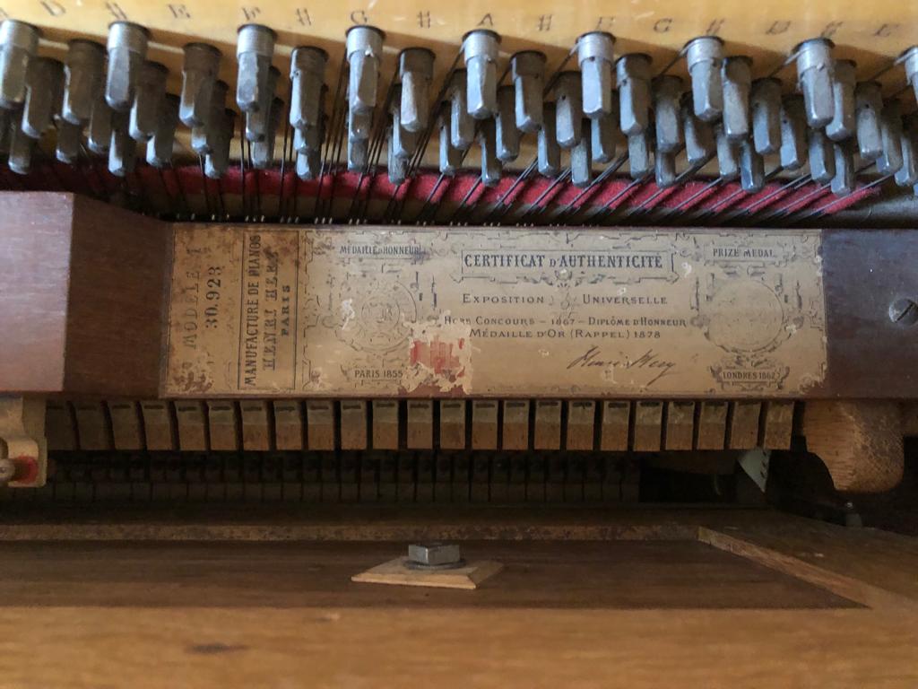 Austausch sämtlicher Stimmnägel und Stimmung eines Henri Herz-Klavieres von 1870 mit anschließendem Konzert.